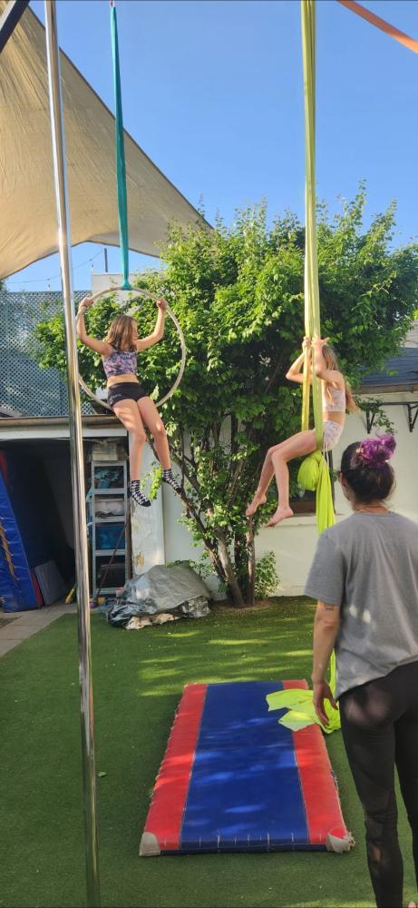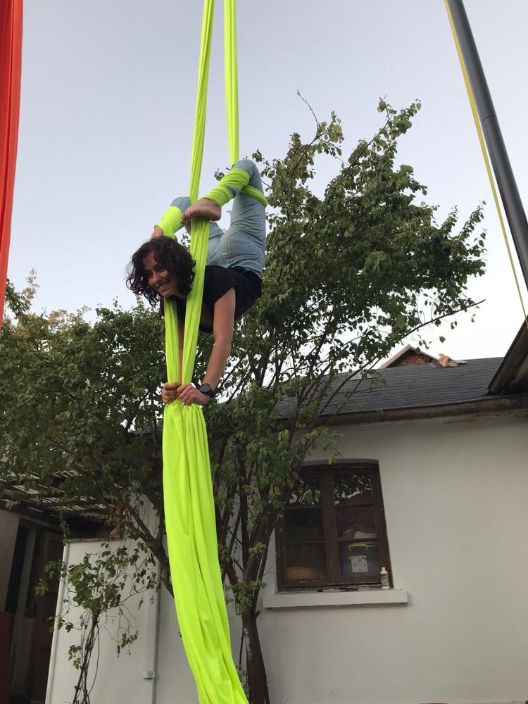 tela aérea es una disiplina circence en donde se trabja la fuerza, la flexibilidad y la acrobacia aerea.